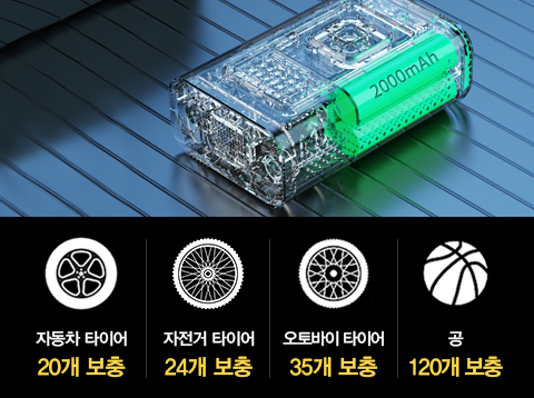 오토바이 타이어 기준 35개까지 공기주입할 수 있습니다.