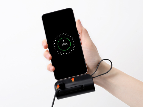 스마트폰과 보조배터리를 따로 충전할 필요 없이 보조배터리를 충전하면서 스마트폰도 동시 충전이 가능합니다.
