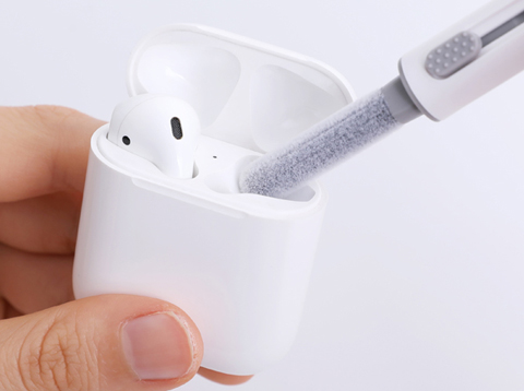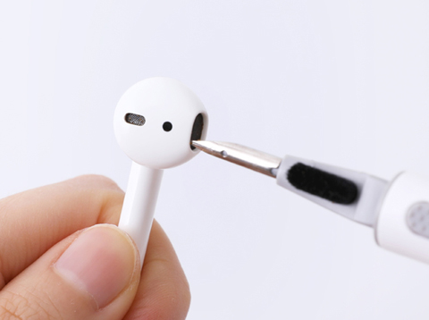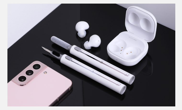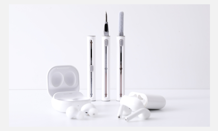 청소가 쉽지 않은 이어폰 크래들 내부 청소도 문제없습니다. 극세사 재질의 미세모 브러쉬 툴은 손가락이 닿지 않는 깊은 곳까지 꼼꼼하고 깨끗하게 각종 먼지와 이물질을 제거할 수 있습니다.