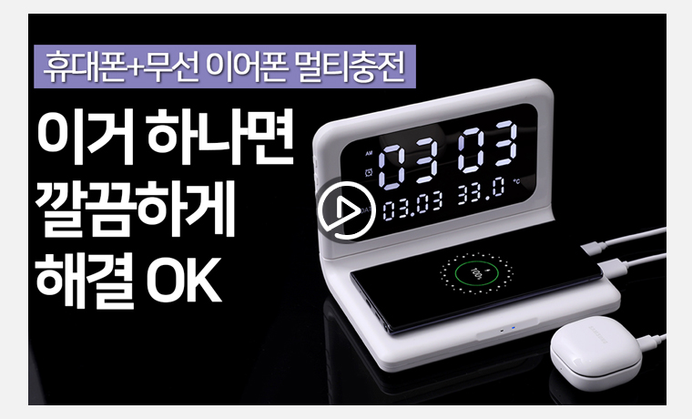 고속 충전기는 물론, 탁상 시계 및 알람으로 사용 가능하여 책상이 복잡한 사무실에서 활용하실 수 있으며, 취침 시 스마트 기기 충전과 알람 설정까지 다양하게 활용 가능합니다.