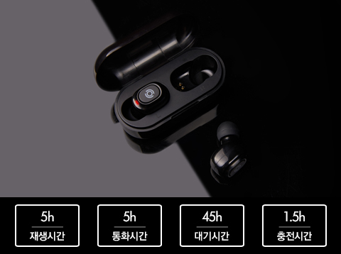 고효율 리튬 이온 배터리가 탑재되어 효율적인 사용 시간을 제공합니다. 완충 시 무려 45시간의 대기시간을 제공하며, 5시간의 연속 통화 및 음악 감상이 가능합니다.