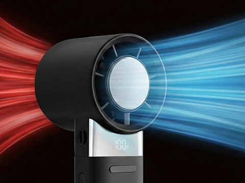 흡입된 공기가 차가운 냉각 소자를 통과하며 식혀진 상태로 토출되는 에어컨 원리를 적용해, 단순 순환이 아닌 차가운 바람을 만듭니다.