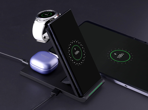별도의 선 연결 없이 충전기에 올려놓는 순간 무선 충전이 시작됩니다. 스마트폰 기준 기기에 따라 5W(일반충전) / 7.5W(고속충전) / 10W(고속충전) 출력을 지원하며, 최대 일반 충전보다 3배 빠른 15W의 고속 충전을 지원합니다.