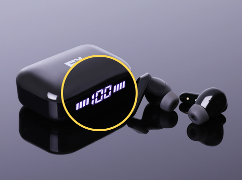 케이스 전면에 배터리 잔량이 숫자로 나타나며, 이어폰이 충전 중일 경우 LED로 표시되기 때문에 배터리 상태를 한눈에 확인하실 수 있습니다.